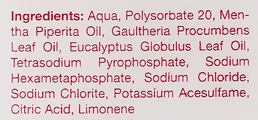 Après chaque brossage des dents, diluer 1 volume de produit dans un verre dans 3 volumes d’eau. Gargariser pendant une minute environ, recracher et rincer à l’eau claire. Ce produit ne contient pas d’alcool. Pour un usage quotidien. Ne pas avaler.