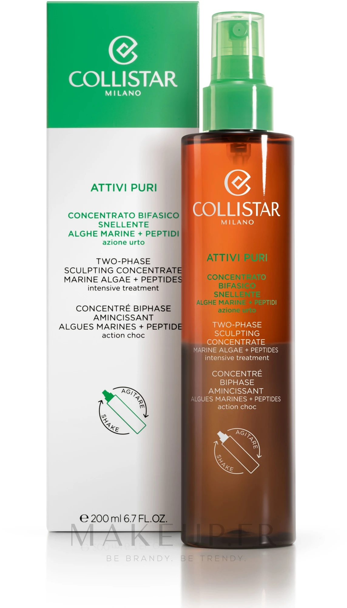Le concentré biphase amincissant aux algues marines et aux peptides de la marque Collistar est un produit de make-up destiné aux femmes de plus de 18 ans. Classé dans la catégorie des produits de luxe à usage professionnel, il apporte une action liftant et sculptant sur le corps de la femme.