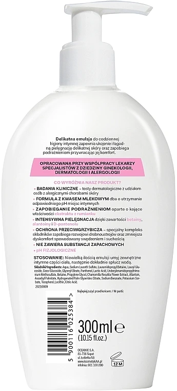 Retrouvez l’équilibre sain de la flore intime avec l’émulsion d’hygiène intime hypoallergénique à la camomille de la marque polonaise AA. Spécialement conçu pour les peaux sensibles, ce produit possède un pH physiologique. L’ingrédient actif extrait de fleur de camomille est un antiseptique puissant naturel, qui combat les inflammations et apaise la peau. A chaque moment de dérèglement hormonal, comme le traitement avec des antibiotiques, le stress quotidien ou les règles par exemple, la flore bactérienne dans la zone intime est aussi déséquilibrée tout en disposant de mycoses vulvaires et vaginales. Profitez des propriétés curatives de AA Intymna Sensitive et d’un quotidien en plein confort.