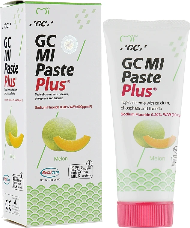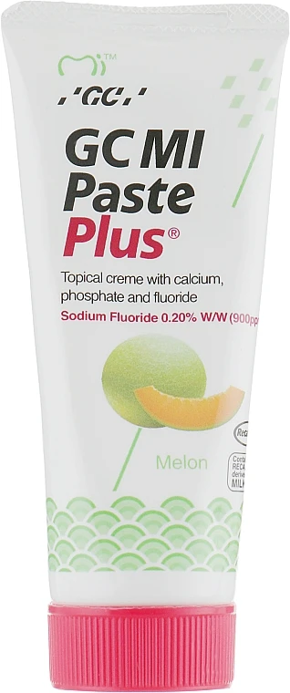 La crème dentifrice Mi Paste Plus Melon est formulée à base d’eau, de fluorure de sodium et du dérivé de caséine de lait Recaldent. Grâce à l’association de ses principes actifs, le produit contribue à réduire la sensibilité des dents, à les nettoyer en profondeur et à régénérer les surfaces émaillées. MI Paste Plus convient tout particulièrement en cas de fragilité des dents provoquée sous l’effet de l’air froid, des températures élevées et des boissons froides ou sucrées.