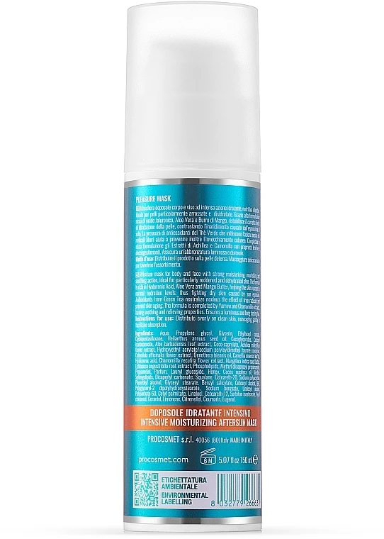 Apaisez votre peau avec le masque Sun System Pleasure Mask de l’entreprise italienne Napura. La consistance agréable du produit est facilement absorbée par la peau et lui offre un confort durable. A l’aide de sa formule riche en principes actifs tels que l’acide hyaluronique, le beurre de mangue et l’extrait d’aloe vera, le masque restaure l’équilibre hydrique de la peau, soulage les rougeurs et prévient le dessèchement cutané. La teneur élevée d’antioxydants dans le thé vert assure la protection des cellules face aux méfaits des radicaux libres et ralentit les processus de vieillissement de la peau.