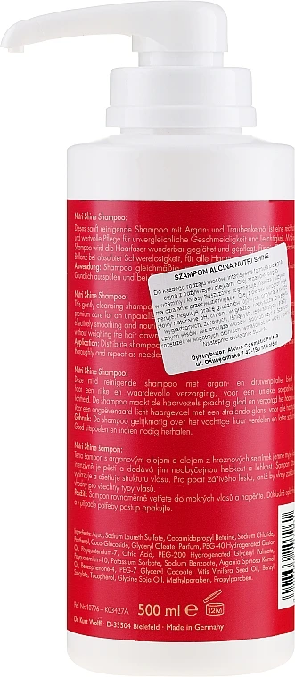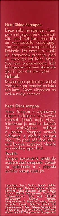 Nettoyez en douceur vos cheveux en leur offrant une nutrition ultra efficace à l’aide du shampooing Nutri Shine de la marque allemande Alcina. Grâce à sa formule merveilleuse, développée à base d’huiles précieuses de pépins de raisin et d’argan, le shampooing donne aux cheveux une douceur incroyable et une brillance naturelle qui améliorent considérablement leur apparence. De plus, tout au long de la journée vous seriez accompagné d’un arôme oriental exquis pour vous sentir comme une princesse des contes de Mille et une nuits.