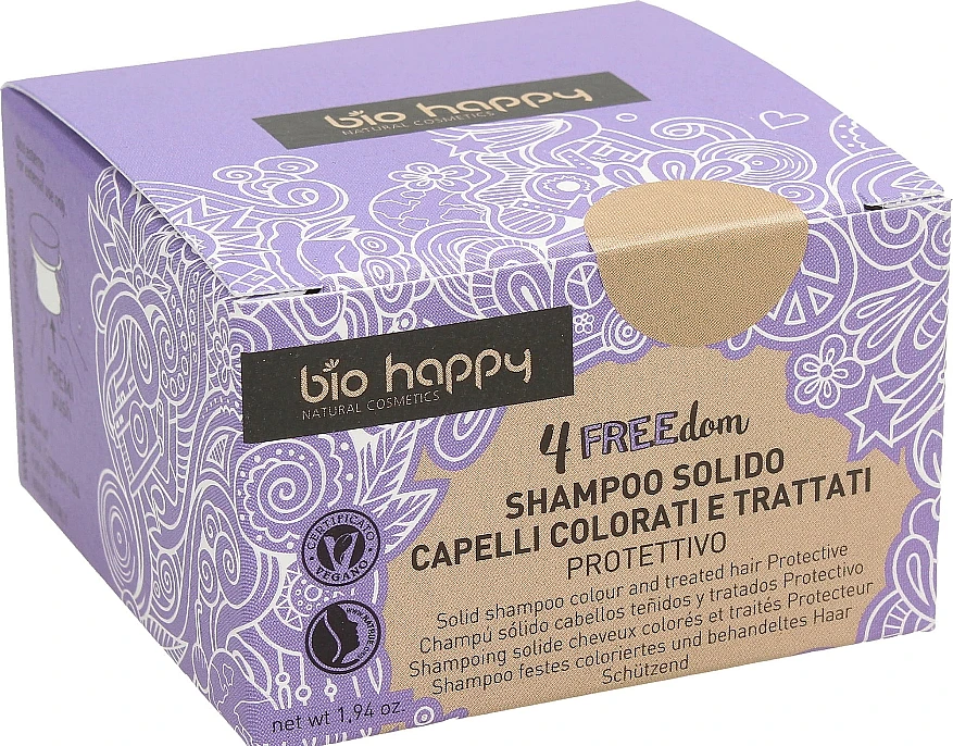 Les cheveux stressés, abîmés et colorés ont besoin de soins plus particuliers. Vous devez donc choisir avec soin les produits cosmétiques qui les nourriront et les renforceront. C’est pourquoi les experts de la marque italienne Bio Happy ont créé le shampooing solide naturel conçu pour les cheveux traités et colorés, le 4FREEdom Protective Solid Shampoo, qui nettoie en douceur les impuretés accumulées et l’excès de sébum et nourrit les cheveux en profondeur. La formule du produit est enrichie en huile d’amande douce, en beurre de karité et en L-arginine, qui se combinent pour donner aux cheveux une brillance et une douceur soyeuses.